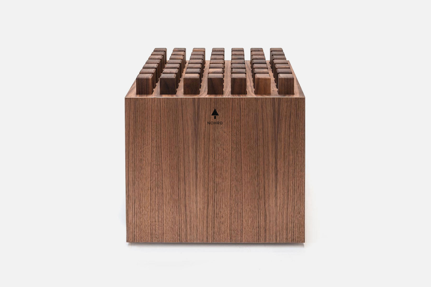 Der HedgeHock hat eine auffällige Ästhetik und wird zum Blickfang in jedem Raum. Hergestellt aus einem echtholzfurnierten Korpus mit 0,8 mm Premium-Furnier, während die Blöcke aus Massivholz bestehen. Alle Holzoberflächen werden mit zertifiziertem Hartwachsöl behandelt. Die unten angebrachten Möbelrollen lassen ihn leicht positionieren und schonen dabei Ihren Boden.