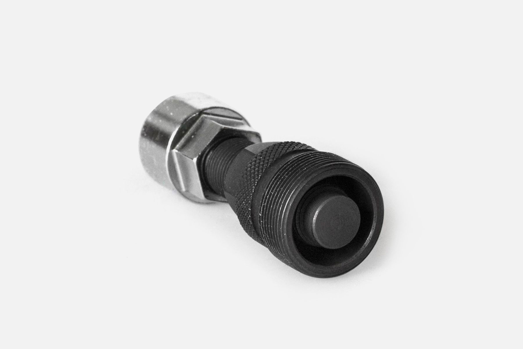 2. Nun drehen Sie den Kurbelabzieher mit der schwarzen Seite voraus in das Innengewinde der Kurbel.