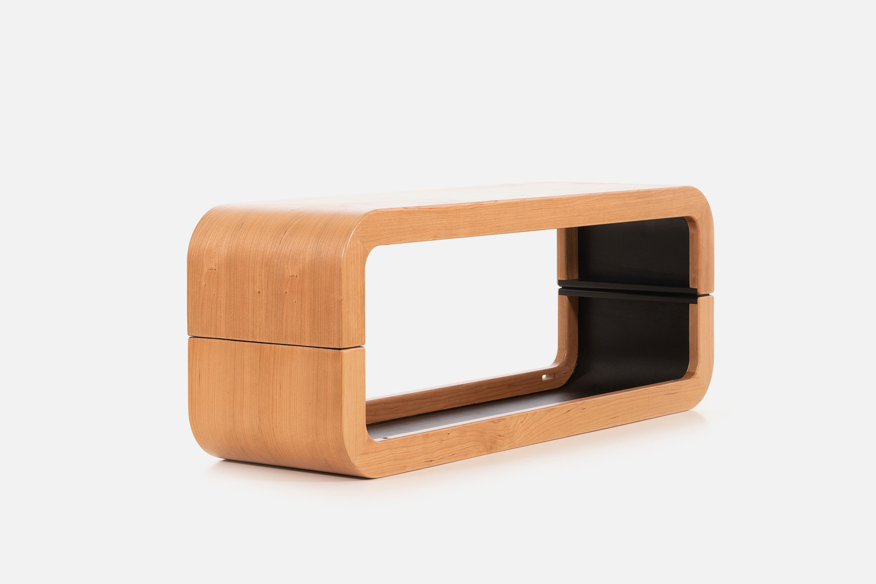 Einzelne Step-Bank aus hochwertigem, furniertem Sperrholz und einem massivem Holzrahmen. 1 Stück.