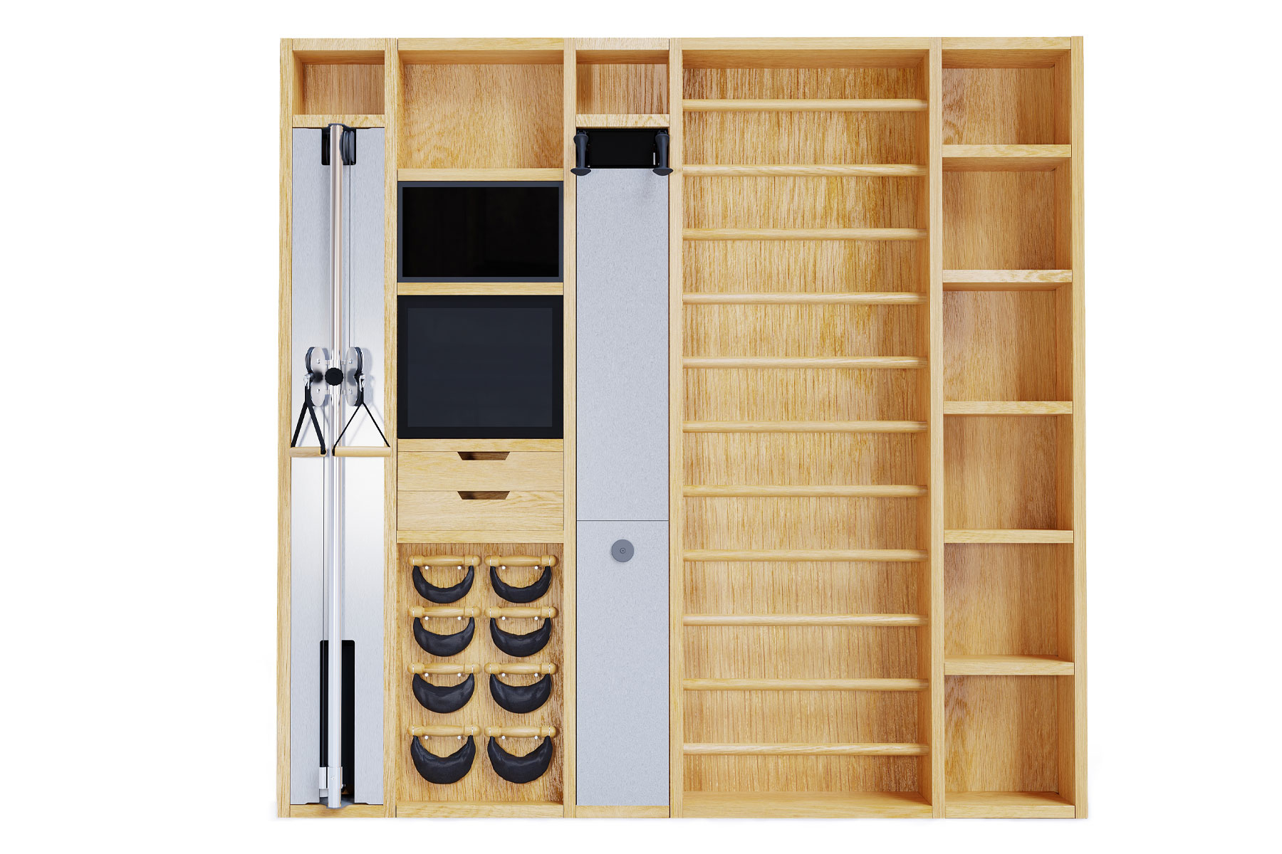 Gesamtgewicht des Moduls ca. 30 kg. Die Höhe ist von 220-240 cm wählbar. Abschluss- und Sichtblenden sind verfügbar. Unser Service-Team wird sich nach der Bestellung bei Ihnen melden, um alle Details zu besprechen.