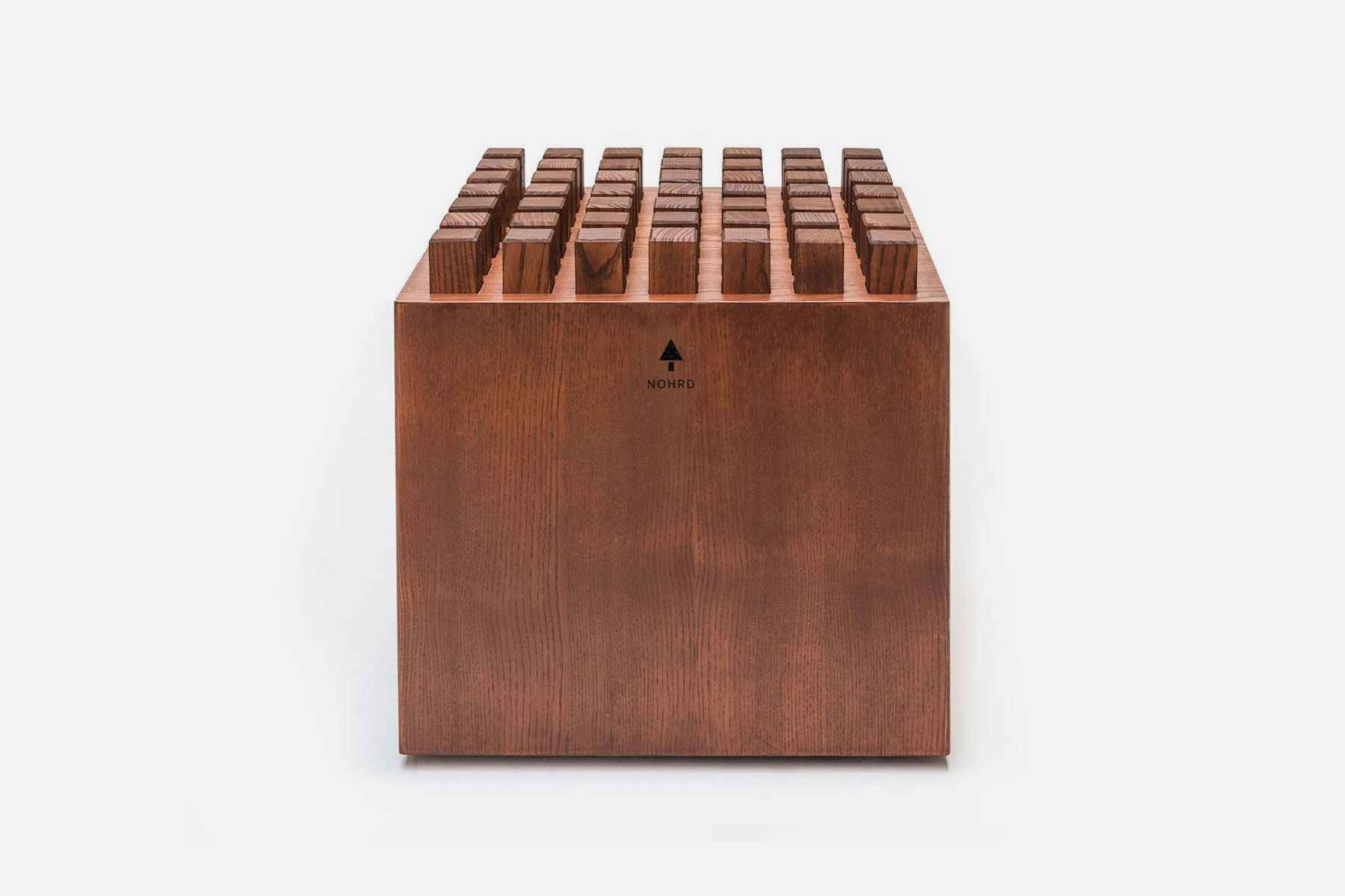 The HedgeHock is defined by a striking aesthetic design, making it stand out in any interior. Crafted from stained wood, the body is real wood veneered (0.8mm premium veneer), while the blocks are made of solid wood. All surfaces are treated with certified hardwax oil to shield from external influences. Move the HedgeHock effortlessly with its four premium furniture casters, sure to preserve your floor.