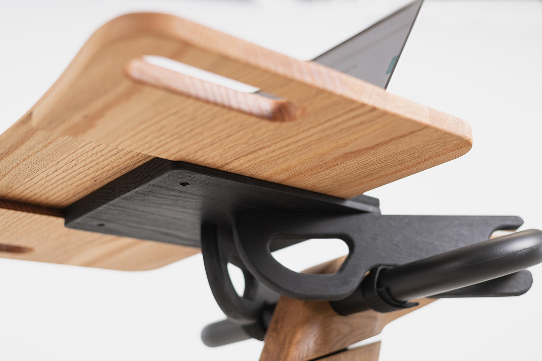 The NOHRD Bike laptop support tray makes combining office work and sport easy and uncomplicated. The laptop holder can be effortlessly attached to the handle of the NOHRD Bike. Thanks to its smoothly adjustable distance from the user and a maximum extension length of 15 cm, the holder adapts perfectly to the working position. The support is available in all NOHRD woods and can be retrofitted at any time.